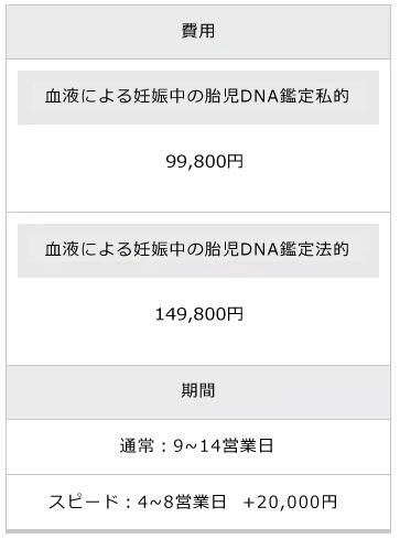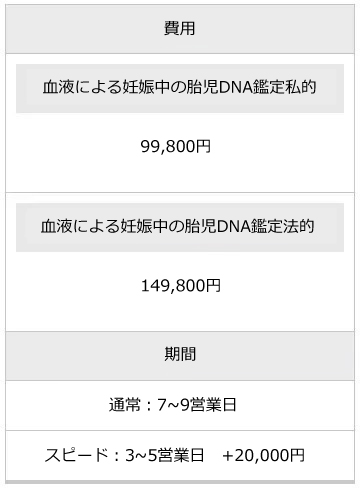 妊娠中の胎児 DNA鑑定(血液)オプション一覧