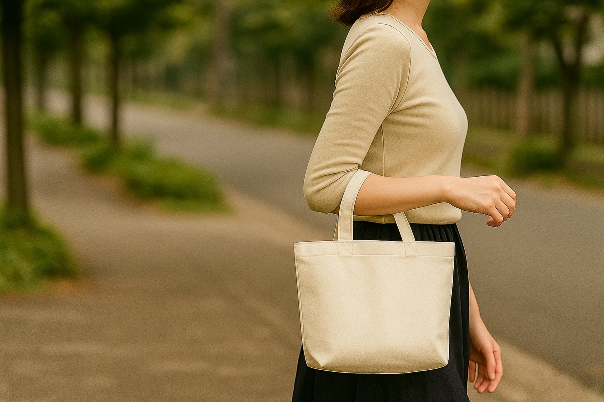 これは一般的なトートバッグやミニボストンバッグのサイズに相当します。必需品やあると便利なアイテムを入れても、このサイズなら重くなりすぎません。